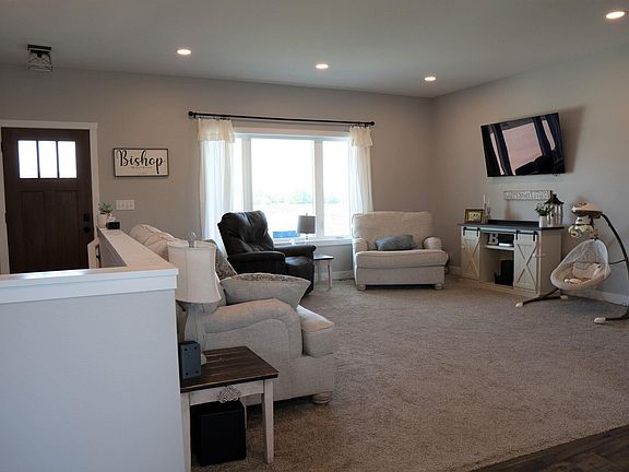 This home was built in 2019, is finished and move in ready. The landscaping, deck and yard are finished and ready for your enjoyment. Enjoy the beautiful open concept home located in a high demand area of town. This 4-bedroom and 3 bath home is great for anyone looking for spacious living and entertaining with the convenience of laundry on the main floor. As you enter the front of the home you will enjoy the light-filled open concept main floor. The eat-in kitchen has white cabinets, counter tops, and luxury vinyl flooring. The laundry is conveniently located between the kitchen and the 2-stall attached garage. You can enjoy the convenience of the main floor primary with an ensuite and walk in closet. This is a great home for entertaining with multiple gathering spaces on the main and a large family room in the lower level. Located close to the new park the city is currently building, you can see the new elementary school from the covered front porch. Currently, you can enjoy the privacy of your back yard because there are no homes to the South or East of you.