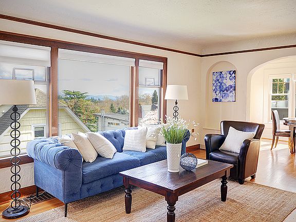 Charming 1927 Craftsman with breathtaking views of Arboretum, Cascades & Lake WA. Inviting home located on corner lot lined with cherry trees & offers driveway/entrance on quiet side street. Wall to wall windows, refinished hardwood floors throughout, walk-in closets, light-filled kitchen, new upstairs laundry, & several other updates. Walk to new UW light rail station, Arboretum, & Capitol Hill. Easy access to 520. Lower level has 8 ft ceilings, windows with views, & ample space for expansion.