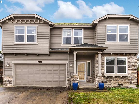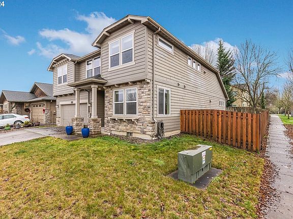 4 bed 2-1/2 bath 2658 sq ft home on corner lot with mature landscaping. Primary on the main with ensuite bath, walk in closet and soaking tub. Awesome open floor plan with office/den on the main that could be used as a 5th bedroom. Large upstairs loft/bonus area, extra wide hallways and beautiful detail throughout! Large Kitchen with Gas Appliances and eating bar opens to dining and living room with vaults and gas fireplace. Fenced Back Yard, Air Conditioning, oversized garage. Not far from Forest Grove High School. 40 Mins to Portland, an easy commute with a small college town feel.