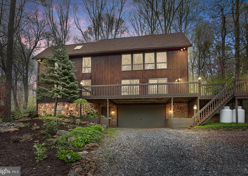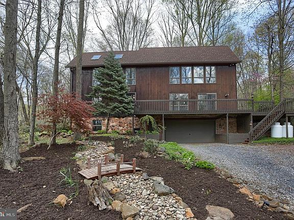 Seclusion and privacy await you in this stunning contemporary home on 2.62 acres of wooded bliss. Soaring cathedral ceilings with wooden beams and sky lights, and two gorgeous mountain stone fireplaces are just a few of the features that make this home an architectural gem. The kitchen boasts granite countertops, stainless steel appliances, a stone wall and cathedral ceilings. The large living room with stone fireplace exits to a large wrap-around deck with amazing views. There is also a large bedroom, full bath with soaking tub and laundry on the main floor. The second floor has a stunning office/family room with cathedral ceilings, a second stone fireplace, and balcony. The huge master bedroom is light-filled with cathedral ceilings, walk-in closet an amazing views of the woods. The master also has a private updated bath. The third floor offers a loft that overlooks the second and first floors. The lower level has a Game Room with wet bar with new carpet. The oversized two-car garage also has workbench area for home projects and hobbies. All stainless steel appliances convey with the home, along with a new Speed Queen washer and dryer. The homeowners have spared no expense in updating this beautiful home. For your peace of mind, there is a Generac generator which offers whole house power in just a few seconds. The owners replaced the HVAC system in 2020, a new water heater, electrical panel, water softener, and new oversized gutters in 2019, and installed the Generac generator and security system in 2018. New flooring, fresh paint and extensive landscaping were also a continuation of the upgrades. The 3-sided deck offers outdoor living and dining with room to spare. Enchanting garden pathways wind through the property and feature a host of flowers, woodland perennials, flowering trees and shrubs. Oh...and you can sell your lawnmower! You won't need it here. This home is convenient to the PA Turnpike, and Routes 322, 72 and I-81 for ease of commuting.