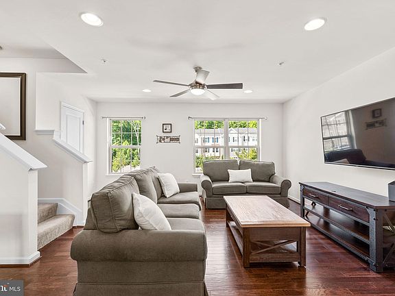 Charming townhouse in quaint Ravenhurst Glen featuring 2,140 sqft of living space, 3 bedrooms, 2 full baths, 2 half baths, additional bump-outs on each level adding additional square footage, and a 1-car garage. Step inside the lower level to find a welcoming foyer, a spacious carpeted recreation room with exterior access, and a half bathroom. Head upstairs to the open-concept main level, where hardwood floors flow through the living room (complete with a convenient half bath), the dining room, the kitchen, and a sunroom. The eat-in kitchen boasts stunning features such as a large island breakfast bar, elegant pendant lighting, a beautiful subway tile backsplash, stainless steel appliances, and a pantry. The upper level includes a laundry room, 2 full bathrooms, and 3 carpeted bedrooms, including the owner’s suite. The owner’s suite offers a walk-in closet and an attached full bathroom with a stunning glass-enclosed standing shower and a built-in bench. Enjoy the fully fenced backyard and nearby community amenities including a playground. The prime location offers nearby access to Interstate 95 and amenities including Eastern Regional Park and Bengies Drive-In Theatre, shopping at Riverdale Shopping Center and Martin Plaza, and various dining options.
