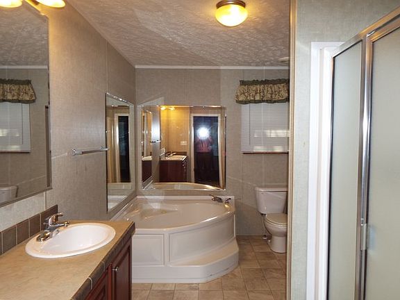 Nice Double-wide on a corner lot with plenty of room to spread out. A large walk-in closet and masterbath accent the master bedroom and an open living room and dining room are a real plus. A large covered porch is great for entertaining. This home has a permanent underpending and a carport for keeping the groceries out of the rain.