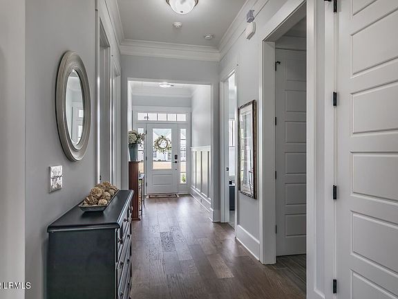 Don't miss this almost new construction on Dataw! The Capeside's open floor plan allows for easy living and features 4 bedrooms, 3 full bathrooms, a laundry room, a two-car garage, and a golf cart garage. The main living area combines the living room, kitchen, and dining area opening to a relaxing screened-in porch with views of Morgan River #15. The gas fireplace with surrounding built-in cabinets highlight the living room. The large owner's suite on the first floor has a spacious walk-in closet with upgraded shelving, an oversized luxurious shower, and dual vanities. Two additional bedrooms on first floor. Upstairs bonus room has a full bathroom and a walk-in closet. With features added after it was built, this house is better than new and is perfect for entertaining. Membership required