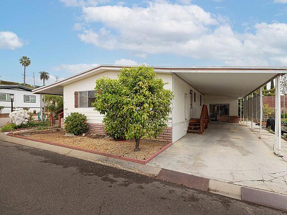 * ALL AGES WELCOMED * Land Lease * 3 Bedrooms, 2 bathrooms, 1,248 SQ ft of living space in a gated community. Concrete patio, corner lot, mature lemon tree. Includes 1 shed + 1 storage room. Brand new flooring thru out the house, open floor plan. Master walk-in closet, large master bathroom. Large front porch. Amenities include: Pool, Laundry, Club House, Storage Units for Rent plus a Beautiful Lake. Close to freeway 78 & 15, Costco, Walmart, Target, Lowes, Home Depot, Ross, Dollar Tree, Dennis, IHOP, Grocery Markets. It won't last, call now! - Space rent: $834.00/month, plus: Trash, Sewer, Recycle, Water, Gas & Electricity.