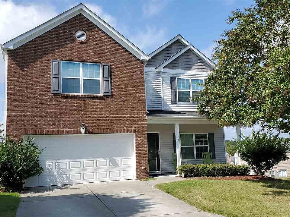Finally one of the larger floor plans is available in Swanns Mill. This home features a spacious open kitchen and living area, formal dinning room which can also be used as a home office, and 5 nicely sized bedrooms upstairs. Outside is a flat fenced in back yard with storage shed, covered porch and patio. Across the street is the community pool and park.