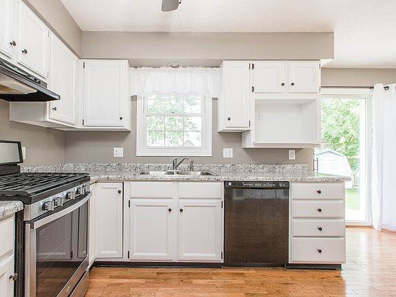 Don't miss this gorgeous, move-in ready home! 4 Bedrooms, 2.5 baths with updates and unique floorplan! Hardwood floors throughout main level. Main floor master bedroom with jetted tub and zero entry shower. Fresh, eat-in kitchen with white cabinets and new countertops opens to the living room with wood burning fireplace. 3 bedrooms and 1 bath upstairs with potential second master bedroom with 2 closets and hardwood flooring. Partially finished basement with family room and additional storage and laundry. Main level is completely handicap accessible including an oversized 23x22 garage with concrete ramp into the home, 3-0 doors on main level and more. Enjoy the beautiful, fenced backyard from the oversized patio!