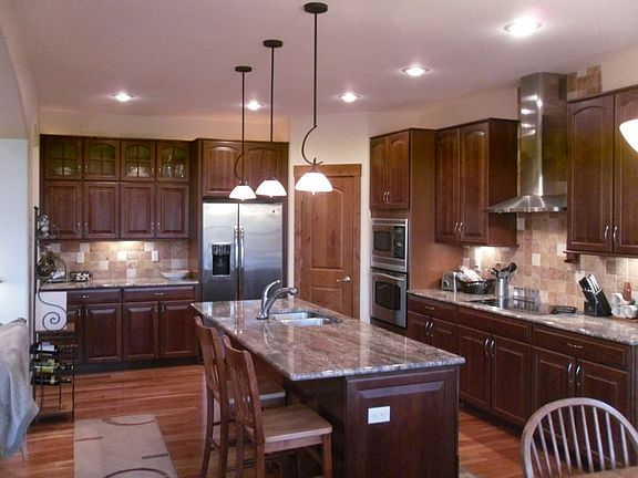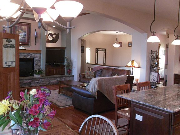 Quality built, custom designed and built home offers main level with great room, kitchen, dining, master suite, luxurious bath, laundry room, powder bath, and large office with french doors and custom built-in desk and bookshelves designed for use by 2 people as a professional home office. Lower level has 2 more bedrooms, a nice bath, a multipurpose room that can be used as a family room, game room, tv room, etc., an exercise room with equipment included, and an oversized 3-car fully finished garage with sink and workshop area. Covered front porch and large rear deck. Home backs to Utel Valley Park (huge natural park with lots of hiking/running trails) and is located within walking distance of a shopping center w/ Safeway, fitness center, library, and several restaurants.