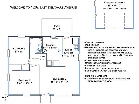 This cute and charming house stands ready for you to call it your home! Tons of updates include: ceramic tile in the kitchen and bathroom, kitchen cabinets and counters, windows throughout, high-efficiency furnace (2010), water heater (2011), electrical (2012) and a garage! Ceiling fans in most rooms keep things comfortable throughout the year. The utility room offers plenty of storage if the garage isn't enough. A gas stove in the kitchen makes cooking a breeze. The existing storage cart can be moved to make room for a seating area within the kitchen. The bathroom offers a spacious linen storage nook. The front-loading washer and dryer also stay! Outside, enjoy entertaining on the patio in your large yard. There are plenty of bus lines nearby and shopping and restaurants abound in the area. View the 360-panoramas, floor plan and high-resolution photos at www.AroundCU.com, then come visit this must-see home in person!