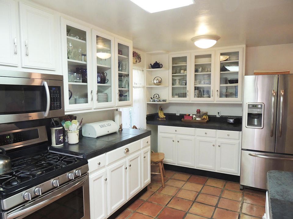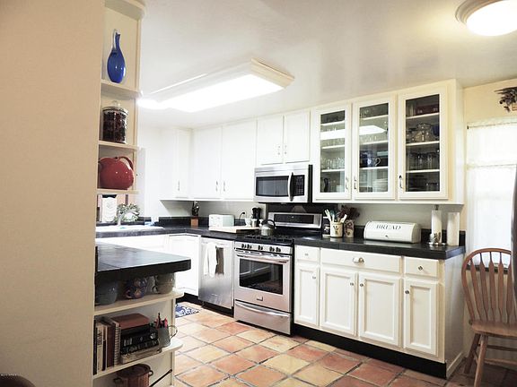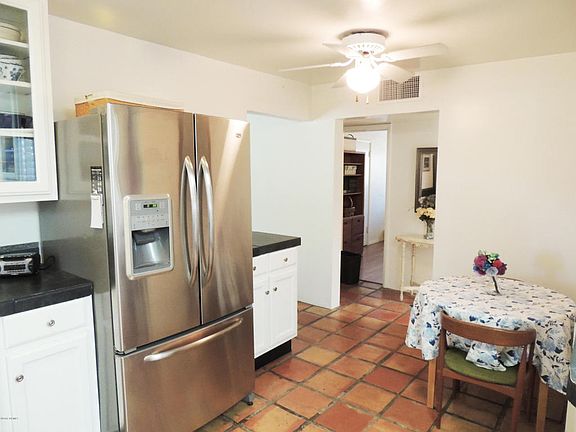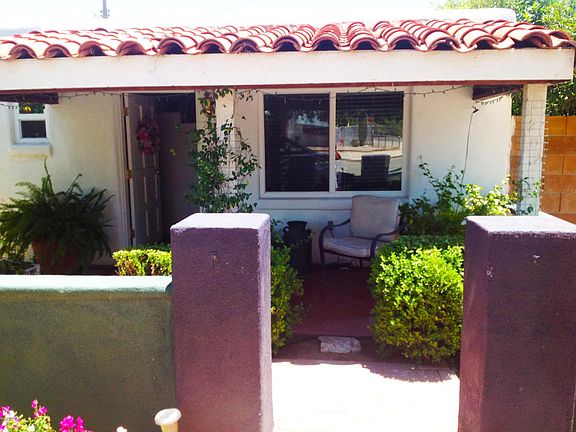 Appealing U of A area 3bd/2ba home w/updated kitchen, lovely gardens & patios. A flowering porch is your entry into home where you'll find high tongue & groove ceilings & Saltillo tile thru most of house. Lite, brite & large updated kitchen has lots of cabinets & counters, stainless steel appliances, slate counters & cozy breakfast area. Elegant, large formal dining room has f/p as does adjoining cozy family room. The yard wraps around 3 sides of house w/multiple shaded patios, mature trees & flowers, BBQ area, grass & childs playhouse. Sunny master bedroom w/great built-in storage, nicely-sized 2nd br & 3rd br being used as a studio. The home has been well-loved & cared for & is move in ready. EZ commute to UA by bike-path.