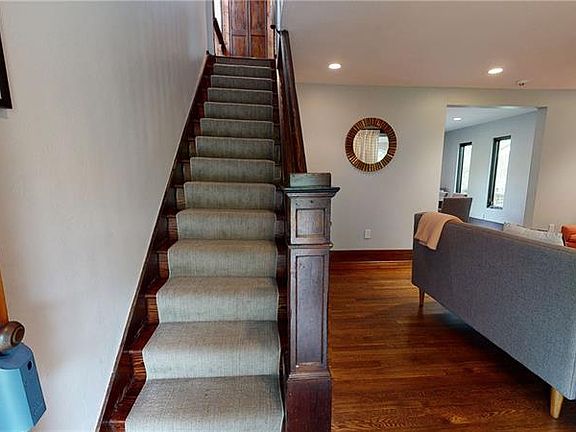 Fabulous Regent Square home. Light and Bright 1st floor with dining room open to rear deck. Galley kitchen with rear door opening to rear deck. Great flow for entertaining. Lower Level is finished game room, laundry area, storage and a second full bath. 2nd floor features a full bath and 3 spacious bedrooms. Covered front porch. Covered rear deck and level rear yard. 1 car detached garage.