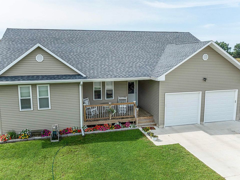 Located in the desirable Sunnyside Estate subdivision, this move in ready home built in 2021, offers modern comfort with a touch of elegance. This 4 bedroom, 2 full bath residence spans 1,740 square feet of living space, featuring an open concept design with 9ft ceilings and custom ceramic/hardwood flooring flowing seamlessly throughout. The kitchen is a highlight with boasting quartz countertops, a beautiful tile backsplash, an apron sink, and matching stainless steel appliances. The living room is made for relaxation, complete with a custom made fireplace that adds warmth and charm. Each of the bedrooms is generously sized, with the primary suite standing out with his-and-hers closets, a walk-in tile shower, a jetted tub, and dual sinks. Outside, unwind on the back deck or enjoy the peaceful atmosphere from the front porch. The home also includes an attached 2 car garage, utility shed, and a concrete climate controlled crawlspace with a cement floor, providing extra storage space. This property is a must see for anyone looking for a blend of modern living and thoughtful design.