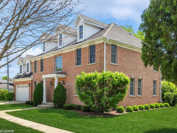 This custom-built brick corner home is flooded with sunshine and positive energy. The first floor features gorgeous hardwood floors, a large eat-in kitchen with newer high-end appliances, freshly wrapped white cabinets, granite countertops, and a functional island. The family room flows off the kitchen and is ideal for entertaining. Full dining room with elegant molding, sitting room, convenient office, and powder room round out this floor. Above the two-story foyer is the perfectly laid out 2nd floor. Featuring the primary suite which has a massive walk-in closet tray ceilings, a stone surround bathroom with two separate vanities, large soaking tub, and glass enclosed shower. Three additional bedrooms, second full bath, and a convenient laundry room complete this floor. The lower level features a fantastic rec room with high ceilings, phenomenal extra storage, and fresh carpeting. Solid core doors, skylights, detailed ceilings, an attached garage, and a newer dual-zoned HVAC round out this truly impressive and well-cared-for home! Close to shops, restaurants, parks, school, and train. This remarkable home is waiting for you. Love where you live!