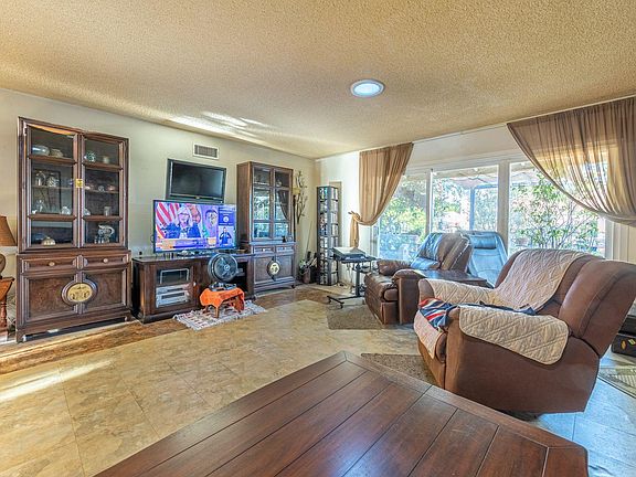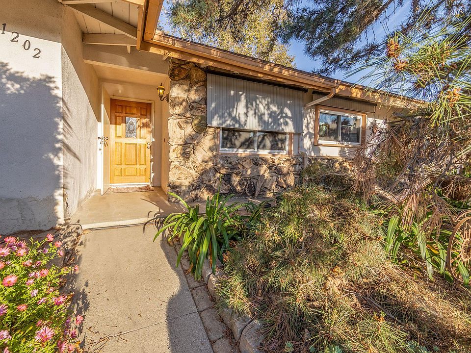 Sprawling One Story Retro Ranch Home. Mid Century Modern. 4 Bedroom plus 1.75 baths. Open Living room with Rock Fireplace. Kitchen Open to dining area. 3 solar skylights. Ceiling fans and mirrored wardrobes in all the bedrooms. Large tranquil back yard sparkling salt water pool , just in time for summer with a combo colored concrete and wood decking for relaxing. Newer windows. Newer air and heat. 2 car attached garage. Great neighborhood. Walking distance to elementary, middle school ,high school and shopping.