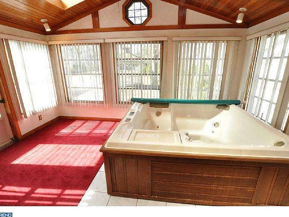 Stunning departure from the ordinary for this deceiving 1.5 Story home with over 1,900 sq feet of living space. Almost a 1/2 acre of grounds featuring a private rear gazebo and a detached 2.5 car garage with separate heat and central air. Open & airy 1st floor living featuring a large updated eat in kitchen with granite counter tops. Center island with electric cook top with additional cabinetry. Over sized RANGE MASTER hood, double oven, pull out wallpantry shelving. Bright sunroom addition with vaulted ceilings with skylights with it's own zone gas heating source with large (4) person jacuzzi (negotiable). Newer hardwood floors throughout livingroom and formal dining area. (27 x 10) family room with plush carpets and warm and inviting wood stove. Convenient laundry room off kitchen with stackable upgraded LC/TROMM washer and dryer. Both full bathrooms have been completely updated. One features glass enclosed stall showers with new vanity and the other offers custom tile flooring with stall shower and a separate garden tub. Walk up 2nd floor has the 4th bedroom with additional room ideal for a playroom/office/ 5th bedroom with heat and AC. Full size basement ideal for additional storage or for finishing. Other important features include an alarm system, front porch, side and rear deck.