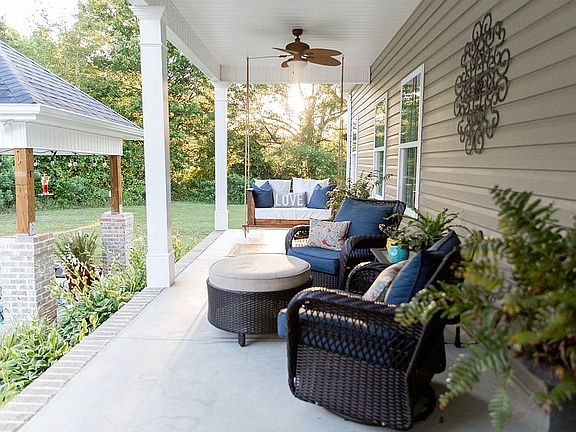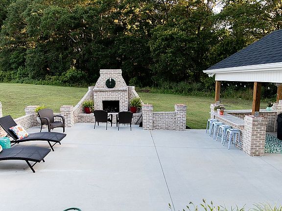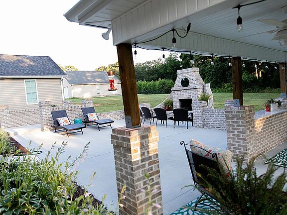 24 x 30 detached garage, 1000 sq ft of patio space with fireplace and covered cooking area with granite countertops and jacuzzi area, covered back porch, walk in attic storage accessible though finished bonus room.