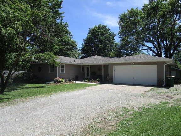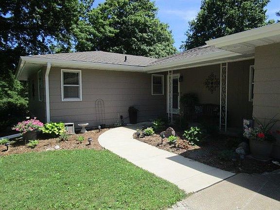 Fantastic home near Golf Course & Country Club! Cathedral ceilings set the living room apart---views all around, central fireplace, surround sound, & a sliding door to the rear patio overlooking the attention-to-detail landscaping. Beautiful Cherry kitchen with Quartz countertops, pantry, soft-close doors & drawers, eat-at bar & hardwood floor and open to the Dining Room. Large Master Bedroom with walk-in closet, private bath with Quartz countertop & hardwood floor. Beautifully updated hall bath w/quartz & new fixtures. Two more bedrooms with closets & main-floor laundry closet complete the main level. All new 6-panel doors throughout, mostly new sheetrock, & tiled entries--front door with built-in blinds. Full poured foundation for additional living space. Two-car attached garage with sheetrock. Storage shed & many other amenities. Be sure to ask for the update sheet.