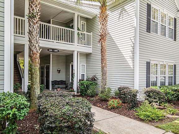 Discover this remarkable first-floor 1320 sq.ft. condo in the Grove Park community at Grand Oaks, featuring a plethora of upgrades. Inside, you'll enjoy dark wood floors, crown molding, and faux wood blinds. The kitchen shines with granite countertops, high-end cabinetry, and modern appliances. The guest bathroom is updated with granite, chic white cabinets, and designer fixtures. The master bathroom is equally impressive with two designer square sinks, a separate tub and shower, and more granite. There's a practical utility room in the hallway with room for additional storage.This condo also offers a secondary bedroom with a ceiling fan, a master bedroom featuring two walk-in closets, and a versatile flex space suitable for an office, reading nook, or whatever else you mayenvision for comfortable living. The living room is spacious with a gas fireplace and a stylish ceiling fan with lighting. And, you'll love the chic tiled screen porch that overlooks a serene wooded view. Grove Park Condominiums in Charleston offer tranquility amidst lush woods and ponds. Grove Park amenities include a lovely pool and clubhouse, while Grand Oaks provides extensive walking trails and access to Bees Landing Park with various amenities. These condos also offer convenience, with the shopping center at the neighborhood entrance, featuring a Harris Teeter, Starbucks, and more! Don't miss your opportunity to make this your home!