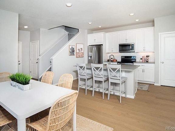 This beautiful two-story, three-bedroom paired home is the perfect combination of style and functionality. Located on a south-facing lot, it's bathed in natural light throughout the day, creating a warm and inviting atmosphere. The main level boasts an open concept layout, with the kitchen, living, and dining areas seamlessly flowing together. Upon entering, you’ll immediately notice the gorgeous vinyl plank flooring which is both durable and easy to maintain. The kitchen is a true showstopper, with striking black cabinets and stunning white countertops that create a clean and modern look. Upstairs, you'll find three bedrooms and a laundry room for maximum convenience. The primary bedroom has sizable windows overlooking an open field, ample closet space, and an ensuite bathroom with a walk-in shower. The other two bedrooms share a second full bathroom, making it perfect for families or guests. Other distinguishing features include a 2 car attached garage and private side yard. These homes are designed for low-maintenance living with energy-saving features throughout and are sure to impress! Finished in May or June 2023. The Listing Team represents builder/seller as a Transaction Broker. *Interior photos are of model, not actual home*