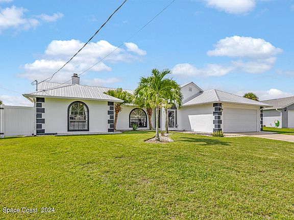 Absolutely stunning, and meticulously maintained, pool home in NW Palm Bay with City water on .35 acres with no backyard neighbors. Starting in the front of the home, you are welcomed with beautiful landscaping, screened-in front porch, and a beautiful modern front door complete with multi locking system. Inside the home you will find soaring vaulted ceilings, split bedroom floor plan, formal dining room, and multiple living spaces with one boasting a wood burning fireplace. In the kitchen, the floor plan is open to the 2nd living room and offers newer appliances, solid wood cabinets, and center island. The master en-suite is generous in size, comes with a secure wall mounted safe, offers a large walk in closet, and large bathroom with garden tub and walk in shower. The pool is amazing with screen enclosure, umbrellas, and trussed porch. 2017 Metal roof, 2024 AC, 2020 water heater, 2017 water supply line repipe, septic serviced in 2023, and water filtration system(but on city water)