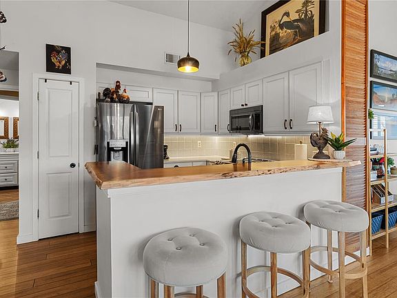 This gorgeous 2bed/1.5 bath condo is absolutely stunning! Located in a lovely community with a spacious club house, pool and tennis courts & a picturesque lake. This upper level end unit offers plenty of unique features and greets you with a spacious deck. The interior has been fully updated and opens to a lovely living room that includes gleaming hardwood floors, bright skylights, soaring vaulted ceiling and cozy fireplace. You will find a spacious dining area on the way to your fabulous kitchen that includes a pull-up bar area, custom cabinets, backsplash & stainless steel appliances. A large deck off the dining room offers additional space for relaxing with a water view. The main level also includes an updated half bathroom, large guest bedroom & spacious primary bedroom w/lofted ceilings & luxurious ensuite that includes dual vanity, large glass walk-in shower & skylights. Garage has a loft that is 7x15 and connects to the home through a private stairway. New hot water in 2024. Location: End Unit, Upper Level