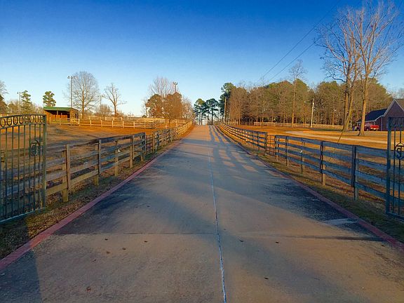 Horse-lovers dream estate! Incredible custom detail: stained concrete flrs, barnwood walls, sliding barn doors, beautiful kitchen w/ walnut cabinets, leathered granite, commercial refrig., gas cooktop, open floor plan to living room w/ real rock fireplace & 2 dining areas, vaulted wood beams; master-main level; huge walk-in shower; screened porch, wood floors & other bedrooms up. Gated entrance; 4 horse sheds/2 pump houses; lg stocked pond; multi-pastures and lighted arena for riding. See Agent Remarks.