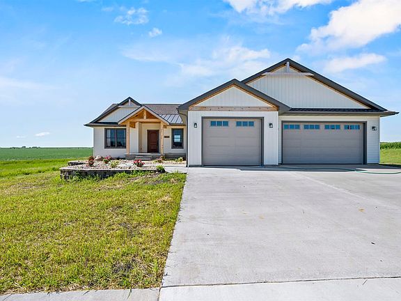 Be the first to call this new development home! Brand new construction in Dunkerton completed August 2022. This tastefully designed and well thought-out custom home has everything you need when it comes to functionality and style! Upon entry, you're greeted by an open concept floor plan, flooded with natural light. Nestled between the living room and garage entry, is the perfect desk space or family command center. As you proceed into the kitchen, you're greeted by a stunning grand island in the kitchen, offering ample counter and cabinet space. Tucked in next to the refrigerator is the ultimate kitchen storage solution - a hidden pantry! All cabinetry in the home is custom from Weber Custom Cabinets in Jesup. Just off the kitchen you will find main-level laundry with a sink and storage before you enter the primary suite. The primary bedroom includes tray ceilings and windows showcasing the incredible views of farmland as far as the eye can see. In the master bath, you'll find a soaking tub, dual-headed shower and access to the walk-in closet. Also on the main level are two more bedrooms, and a beautiful full bathroom. The statement fireplace makes the perfect focal point. Stonework and mantle to be installed August 2022. Stairs lead you to the unfinished walk-out basement that's ready for you to make your own! It is framed for three more bedrooms, a second family room and roughed in for a full bathroom. Photos reflecting virtual renovations to reflect the potential included. The thought put into details doesn't stop there! A walk-out patio complete with hook-ups for a hot tub on the lower level, covered main level patio, attached 3-stall garage that's wired for heat installation and has hook-ups on the exterior for a camper make this the total package! You don't want to miss this stunner - schedule your showing today!