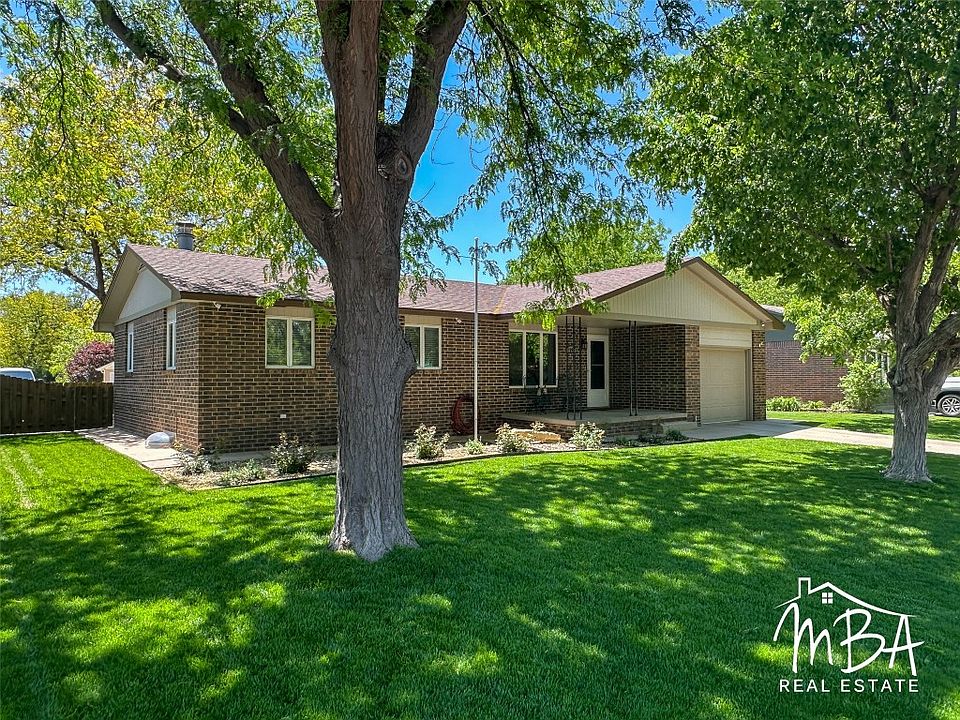 Well-maintained brick ranch in a quiet Garden City neighborhood! This home offers a spacious living area, functional kitchen with dining space, and sliding glass doors leading to a covered patio and fenced backyard. The finished basement features a large living area with fireplace and office space. New furnace and AC in 2022. The detached 2-car garage/workshop is fully heated and cooled—ideal for hobbies, storage, or projects. Additional perks include an attached 1-car garage, mature trees, and great curb appeal!