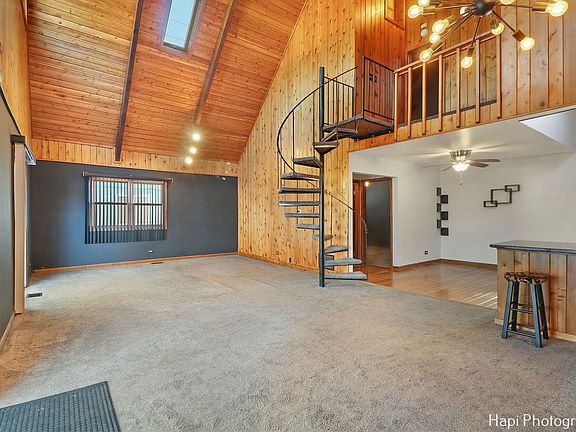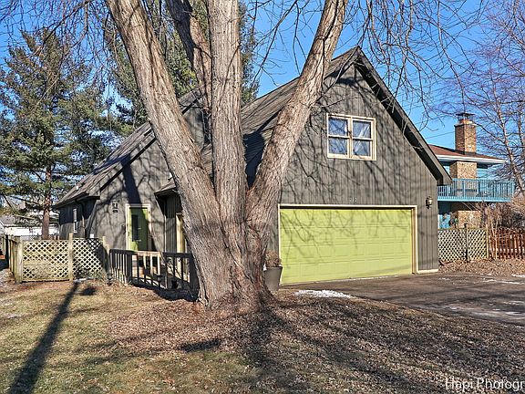 Step into this sophisticated cedar A-frame nestled in a picturesque riverside subdivision in Fox River Grove.This home is move-in ready, all that's missing is you. Bask in tranquil river views from your expansive back deck, or take a short stroll across the street to unwind by the water's edge. Enjoy exclusive river rights via community lots with coveted frontage-perfect for those who appreciate nature at its finest. Inside, soaring cathedral ceilings in the living and dining areas add an elegant touch, while the open-concept space offers a sense of airy grandeur. The chef's kitchen features sleek granite countertops and a stainless steel refrigerator, complemented by a breakfast bar and plenty of room for casual dining. The expansive, unfinished space above the garage presents endless possibilities-whether you envision a home office, studio, or gym, it's ready for your personal touch. Located within the highly regarded Fox River Grove and Cary-Grove High School districts, this home offers both style and convenience in a coveted location.
