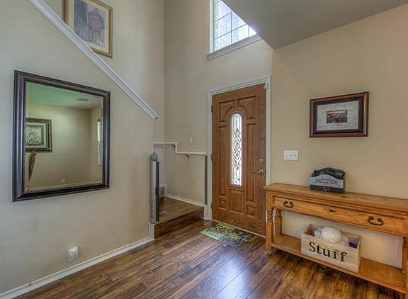 Beautiful private backyard, large (4’x28’) concrete patio / living space, backs to acreage, walk to pool and playground, on a half cul de sac. 4 bedrooms up along with laundry, Beautiful wood, laminate and tile floors down, carpet up. Walking distance to all 3 schools!