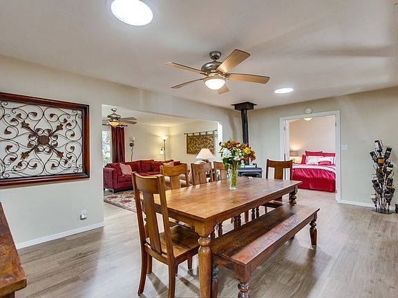 Ranch style 4 BR 2 BA Alpine estate w/peaceful running creek! HUGE LOT includes 2 parcels 2nd #403-381-03-00 PLENTY of room for RV toys & boats at your home! Beautiful chefs kitchen w/stainless steel appliances center island w/breakfast bar granite counter tops handsome cabinets & open to great room w/wood burning stove! Master w/walk in closet w/built-ins & french doors! Open & bright! Covered patio w/sink & cabinets! Porcelain wood-like tile flooring laundry RM w/cabinets w/sink & circle driveway!