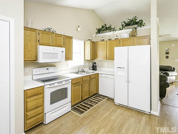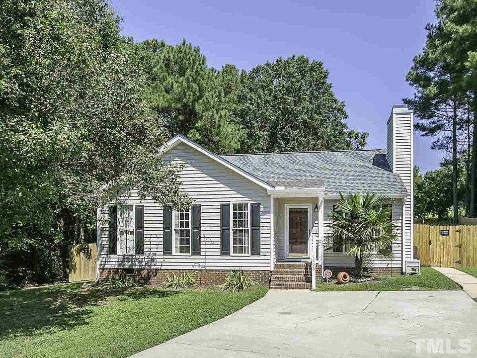 Immaculate, bright ranch home with fantastic outdoor living! Three bedrooms, 2 full baths, cathedral ceilings, two fireplaces. HUGE deck for entertaining, and large fenced yard. Kitchen has plenty of cabinets & a pantry. Laminate floors, so no allergies! Storage space and shed are perfect for yard tools, etc. Great Wake Forest location. Pool/Tennis community, walk to community playground.