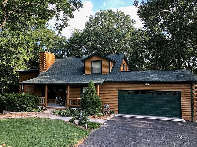 Was under contract, now available! Country living with wonderful privacy, Columbia School District, convenient location, gorgeous sunsets, natural creeks, walking trails with wooden bridges and beautiful landscaping. This 1 1/2 story log cabin home has new carpet throughout (2020), new roof (2019) and new HVAC (2018). There is great curb appeal and a welcoming front porch with a hanging swing. Entering through the front door you will see vaulted ceilings through the living room and dining room, a 2 story stone fireplace and a rustic stair handrail leading to the loft bedroom with a full bath. The main level also has two bedrooms. One is a master bedroom with bay window, full bath and stained glass windows. Down the hallway is a second guest bedroom and another full bath with a garden tub. There is a wide entry into the kitchen and eating area that has a bay window which attracts numerous bird types. The fourth full bath is located in the basement, which is half finished and half storage. There are two 2-car garages. One is oversized and can fit two vehicles comfortably. The second is accessible from the basement and the rear entry garage door. There is a great back deck with stairs that leads to a landscaped yard, firepit, horseshoe pit, and a 12x14 outbuilding for storage. Additionally, there are several fruits trees (apple, peach, pear), bushes (blueberry, blackberry, cherry), herb garden, and elevated garden beds with underground water supply. Home can be heated with your choice of new electrical furnace or wood burning stove, both units use the homes duct work to deliver heat. Home has well water with a city water hook up on the property. There is a Norweco septic system. Owner 618-304-9865