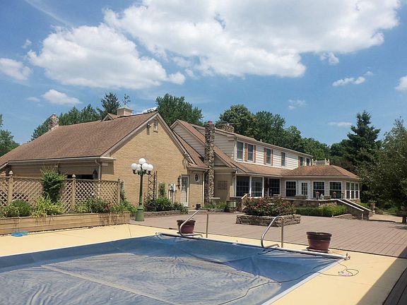 If you are into entertaining, this has it all, an in ground pool with adjacent covered porch, a pond, a shuffleboard court, a pool house, and a nice gazebo. The custom kitchen has an open concept with adjoining breakfast/dining area overlooking the spacious brick patio, and the huge family room and 3 season enclosed porch offering more gathering area for family good times. Formal dining room, formal living room, 12x15 formal foyer, and the 33x15 en suite with 12x13 bath offers lots of privacy for quiet time. Pre-approved buyers only please. Thank you! Both fireplaces are now woodburning. Listing agent is related to seller.