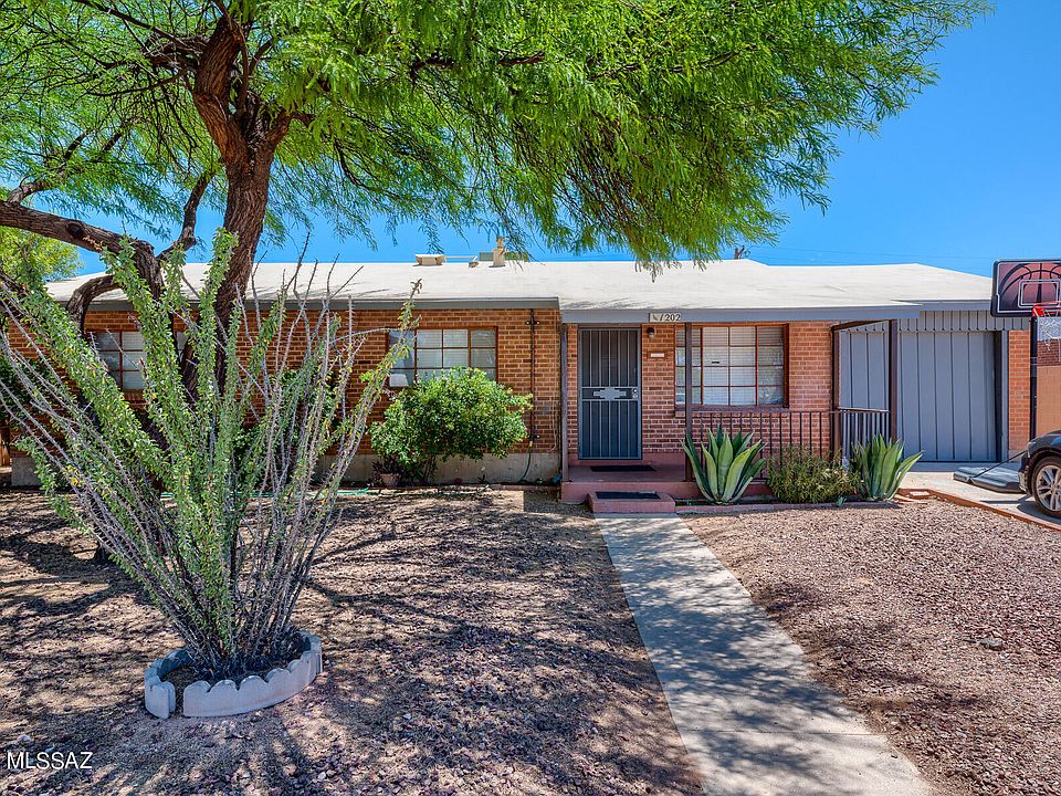Great Income Property! 2 Homes 1 Lot. Front house is a solid brick home, 1,302 sf 3BR/2BA.Front house newly painted exterior. Ceramic tile throughout the entire home. Spacious kitchen opens to dining room and family room. Separate laundry room/storage room w/ 1 car garage. Excellent Income property or live in one and rent the other. Guest house was built in 2007 and is completely private. Features beautiful concrete floors throughout. Perfect size 1,031 sf 2BR/1BA with open floor plan and nice laundry w/ plenty of storage. Spacious kitchen with large pantry. Covered porches and walled in yard. Great Central location, near UofA,, TMC, Shopping, Bus line and more. Rents are lower than market value for long term tenants but can be adjusted to market value when month to month leases expire.