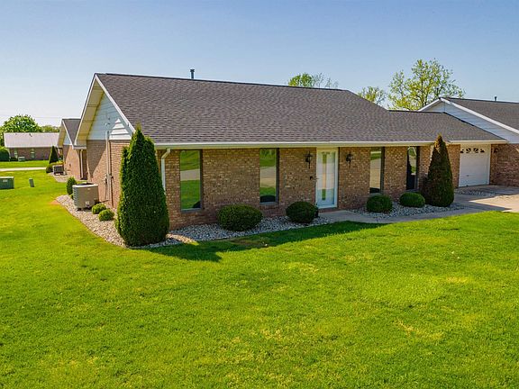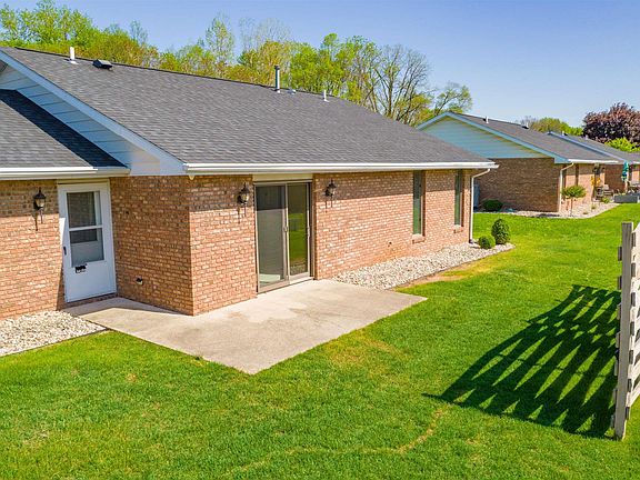 Enjoy 55+ living in this one owner condominium that is being offered for sale for the first time ever. The brick construction and large concrete parking spaces make this unit very desirable for a long term residence. The home has been very well cared for and offers 3 bedrooms with loads of natural light plus 2 full bathrooms, one with a tub/shower and one with a walk in shower. Closets galore and the side by side washer and dryer that remains offer convenience in just a short reach. The kitchen features loads of cabinets, some glass, and all appliances remain. This is a spacious unit with a dining room and large living room with sliding glass doors to a private patio. A one car attached garage with no step entry into the home also offers storage. This association keeps the property top notch and is a delightful place to call home for the duration of life. Security cameras are available as well. $900 quarterly HOA fee includes monthly Water/sewer/trash/recycling plus all exterior maintenance and repairs, lawn care, and snow removal.