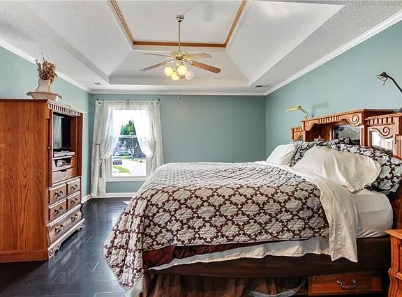 Custom 2 Story Home with park-like back yard can be yours! Curb appeal galore with covered porch you will love. Open living room with vaulted ceiling & masonry fireplace. Barn doors lead to private office or play room - whatever your heartdesires! Granite island kitchen is dreamy with gas double range, stainless appliances. Enjoy either the breakfast room orformal dining room for meals. Guest bath w/granite matching kitchen, so nice! Master suite so luxurious with beautifultile, tub and separate shower, double sinks and walk-in closet. Three other bedrooms!!! Laundry on bedroom level!! Finished lower level includes a rec room, and a room the owners use for their music room. This home is located at the end of a nice cul-de-sac, and literally backs to a neighborhood park, ideal for little ones, although the back yard is fenced with mature trees and is beautiful. Lots of updates to this home. Hurry and get moved in before school starts