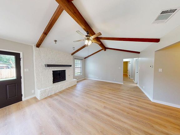 Lovely Round Rock home nestled in a great location - close to Dell Campus, Toll Roads and other shopping and restaurants. LVT Floors have been installed in living, kitchen and all bedrooms. Tile in bathrooms. Vaulted ceilings with wooden beams in the living with stone fireplace painted white, complete with a mantle make it a great space to enjoy and relax! Kitchen has bright white cabinets, granite counters and white subway tile backsplash. Great sized room and walk-in closets in all rooms! Master offers high ceilings and separate water closet and vanity space. Separate space for W/D. Large backyard with great patio to enjoy the outdoors. Come See Today!