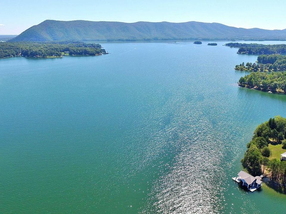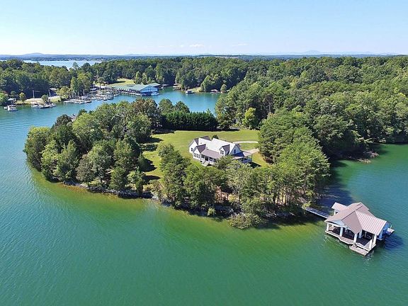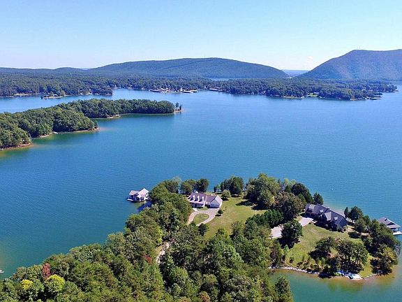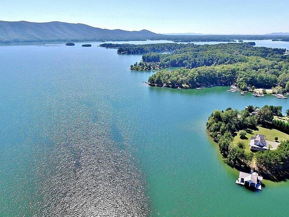 One of a kind Smith Mountain Lake Property! Stunning Cape Cod situated on a unprecedented lot w/ direct mountain views & over 600' of water frontage. Incredible two power lift dock w/ Brazilian hardwood decking, hardiplank wrapped pilings, Bose Marine Speaker system, 5 ceiling fans & CAT 5 cable for Wi-fi. 100 year standing seam metal roof on home & dock. Very inviting home w/ wrap around covered porch, which includes 5 ceiling fans for summer comfort, hardwood floors through entry level which features gas log fireplace & vaulted ceiling in great room, spacious master suite w/ Jacuzzi tub, guest bedroom w/ private bathroom, Eat in kitchen w/ granite counters & custom cabinetry, Laundry & half bath. Large game/TV room that sleeps 4 with full bath. Two additional guest bedrooms & full bathroom on upper level. Dual zone HVAC; Expansive 1100 sq. ft patio overlooking Smith Mountain and the lake with cedar pergola covered dining area, fireplace, firepit, and secluded hot tub area.