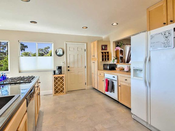 You will love this Pacific Grove home for sale in Del Monte Park. Behind the front gate is a wonderful front yard that leads to a courtyard deck and front door. Once inside this home you will find an ample sized living room covered in oak hardwood along with a freestanding fireplace. The kitchen has been updated with new cabinets, granite tile, newer appliances and tile floors. The dining room is located on the other side of a peninsula and attached to the kitchen. There are three nice sized bedrooms, one being the master which includes an en suite half bathroom. With a little creativity you may be able to add a shower for a full bathroom. There is a nice deck at the back of the house with nice views of the Pacific Ocean. You will enjoy evenings watching the sunset along with the Monterey pine forest from this private perch up high. Property also includes a 2 car garage with laundry hook ups, walk-in 'crawl space' with room for tons of storage and plenty of off street parking.