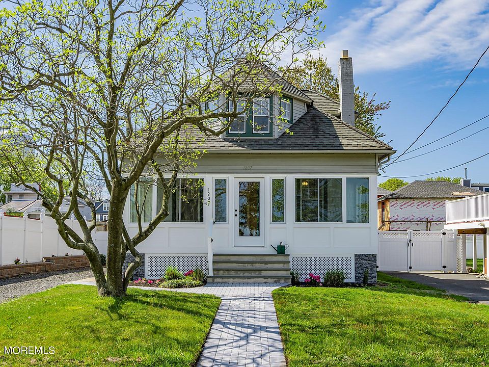 This charming 3-bedroom, 1-bath house in Belmar offers a unique blend of character. From the newly renovated enclosed porch enjoy breathtaking views the Shark River and Belmar Marina from the comfort of your home. The interior boasts a cozy peanut stone fireplace, elegant columns, and glass door enclosed bookshelves, creating a warm and inviting atmosphere. The kitchen is compact with new ss appliances, cabinets and the driveway provide ample space for up to 3 cars. With room to expand, you have the opportunity to build a garage or enhance the back entrance with a deck or a new patio, adding even more charm to this property.