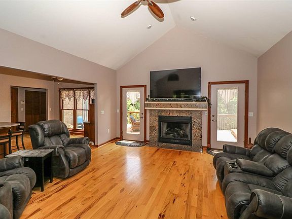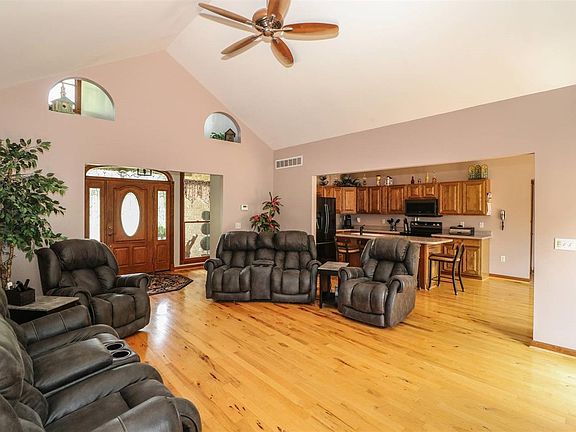 Beautiful brick ranch on 5 acres of peace & privacy! Split floor plan features spacious kitchen, vaulted ceilings, FP & hdwd floors. Enjoy nature from the deck w/hot tub. Expansive LL offers gathering room, wet bar, game room, guest room w/full bath & w/o to patio. Easy commute to downtown/river. Some virtual staging shows decorating possibilities.