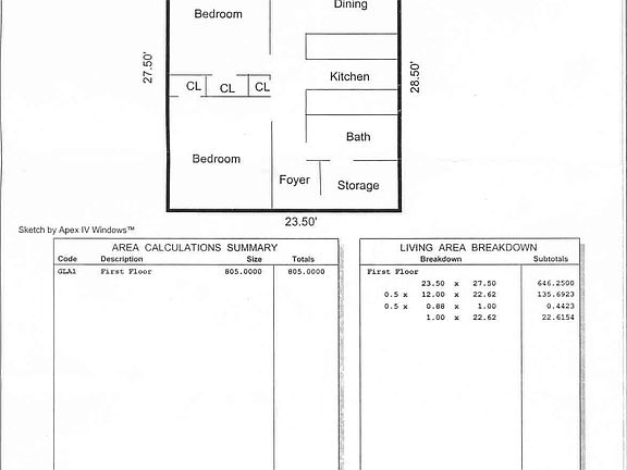 - Total interior livable area: 805 sqft