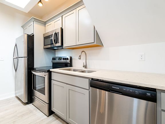 New Construction Apartment - open floor plan large 1 bedroom, 1 bathroom, living room, kitchen with soft close cabinets, granite counters, custom tiled showers. This apartment includes all kitchen stainless steel appliances and a washer & dryer included in your apartment! Walk-in Closet, extra storage closet as well. Vaulted Ceilings, ceiling fans in every bedroom, natural light everywhere with so many windows and a skylight, extra large closets and storage space. Energy Efficient items: appliances, new windows, spray foam insulation, high efficiency mini-split AC/ Heat system, LED lighting Smart home HVAC system There is an elevator for this building making for easier access to your apartment. Gated parking and elevator for convenience. Each apartment has its own hot water heater and central heat and AC. Minimum 1 year lease required. Parking included in rent. Lease includes gated parking- no fee.