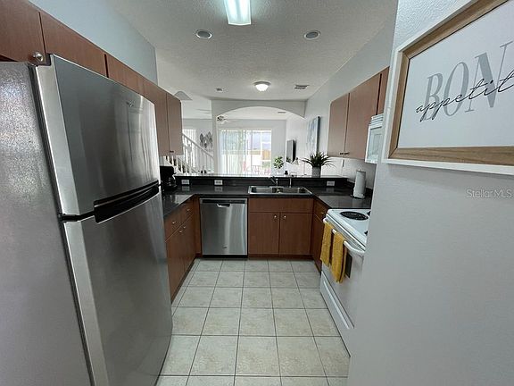 Beautiful townhome 3 beds and 2 and half baths is FULLY FURNISHED and is located in Fiesta Key, a very lovely gated community that offers resort-like living with many amenities including tennis courts, fitness center, clubhouse, play areas, heated pool, spa and much more. This property has a nice open floor plan with a private screened in patio and walking trail. , the large living room features laminate floors with sliding glass doors that lead to a screened patio and storage room, all appliances included, 2 cars driveway. Located in the gated community of Fiesta Key just minutes away from Disney parks, Shopping centers, Restaurants and many more entertainments. All appliances, kitchen wares, sheets, towels, artwork, decorations, etc. .are included. Close to shopping, lots of restaurants, gift shops, Disney, other tourist attractions and entertainment. This one is just waiting for you to come home to