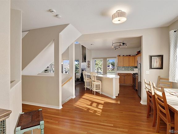 Gorgeous, updated townhome with finished walk-out basement backing to open space and trails. Nestled into this quiet community this home features a bright open concept layout with open space views. High ceilings and brilliant natural light make this home feel spacious and welcoming. Enter into handsome hardwood floors that lead to a sizable dining room, open concept kitchen, and living room. Any chef will love the updated kitchen that features durable Corian countertops, stainless steel appliances with desirable gas range, and a large center island with seating. The adjacent living room boasts soaring two-story ceilings, fantastic nature views, a cozy gas fireplace, and sliding door access to the deck that overlooks the West Gate Creek open space. Upstairs are 3 generously sized bedrooms, including the large primary bedroom that is filled with abundant natural light and features vaulted ceilings, his and her closets, and an updated master ensuite bathroom. The finished basement offers great additional living space with a family room that enjoys walkout access to the covered patio. Shopping and dining are just around the block and Gateway High School, golfing, and several parks are just a few minutes from this fabulous home. Don't miss this wonderful opportunity to be in the gorgeous gem by the holidays!