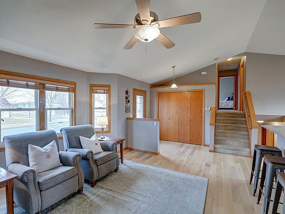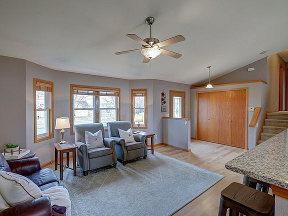 Welcome Home! 2019 kitchen remodel!! Granite counters, massive island has breakfast bar w/ extra cabinetry & white oak floors. Hardwood throughout the main level, vaulted ceiling, & open living rm. Dining area offers access to patio & backyard. New doors, patio door, & windows 2016! Remodeled ll is complete w/ large family/rec room has plenty of rm to watch movies, hangout, sit by the gas fireplace w/ stone surround & farmhouse wood mantle. partial exposure to let the sun in and a huge 4th bedroom with good size closet and 3rd full bathroom. Internet is hardwired to basement, tv & office. The upper level features a full bathroom, 2 extra bedrooms & oversized primary suite w/ vaulted ceiling, double closet & full bath! Walk to local restaurants, trail & upcoming gymnastics academy & pool!
