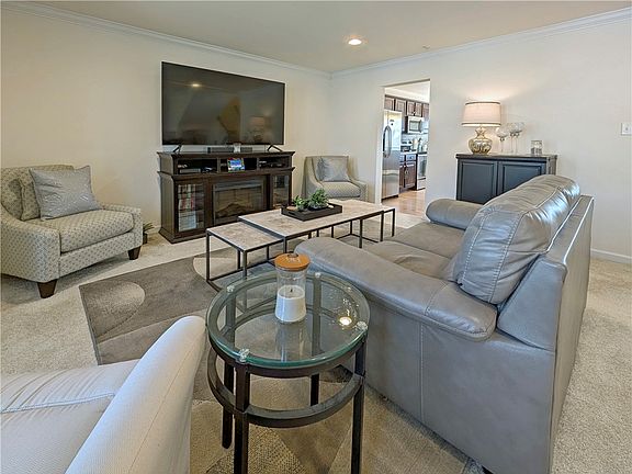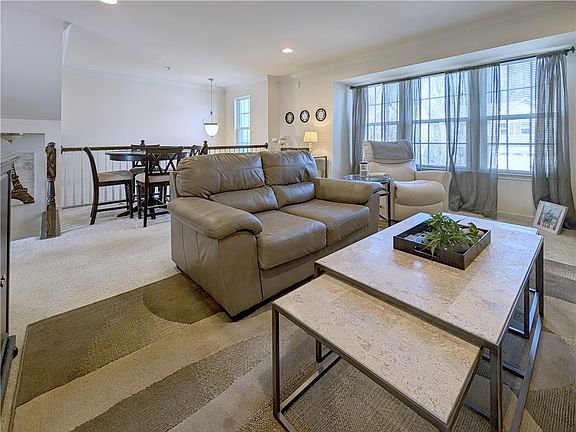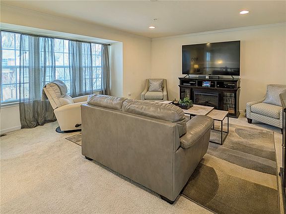 Immaculate and updated 3 bed 2.5 bath townhome nestled in scenic Breckenridge Highlands, with breathtaking views, clubhouse with pool, playground, pavilion and walking trail. This popular layout features partially open layout with private deck and paved patio. Your fully equipped kitchen boasts new hand finished hardwood flooring, functional layout with center island, a fantastic private deck with views for miles! The living room features a romantic box bay window, recessed lights and crown molding. Relax in your slice of heaven in the expansive primary suite with chandelier, walk-in closet, cathedral ceiling and ensuite with double granite vanity and soaking tub. For added convenience, the concealed second floor laundry is just a few steps from the bedrooms. Gorgeous, finished game room is a cozy retreat, with walkout to custom patio and breathtaking views. Your HOA fees covers exterior maintenance, landscaping, common areas, pool, clubhouse, and snow removal on walkways.