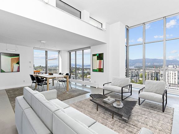 Exquisite two-story Penthouse at Hennessy House offers rare, breathtaking panoramic views of Burrard Inlet, city & North Shore mountains! With 2,000 sq ft, this art lover’s dream residence spans the entire west side of the 12th floor & features a spacious living room, polished concrete floors, large dining area w/ soaring ceilings & floor-to-ceiling windows. The modern kitchen, updated appliances, & cozy breakfast nook combine convenience & style. The primary bedroom fits a king-sized bed & an inviting 5-piece spa-like bathroom, while the second bedroom offers ample light & private balcony. The versatile top floor is perfect for a media room, or third bedroom, & leads to a spectacular wrap-around rooftop terrace. Includes three side-by-side parking stalls, one locker & is perfectly perfectly situated in the South Granville neighbourhood just steps to some of the best parks, restaurants, shops & amenities in the city.