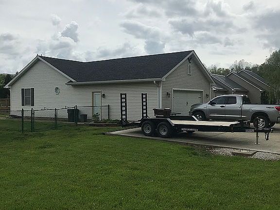 Call or Txt 812-208-7792 . Approaching this lovely 3 bedroom home on a corner lot, you will notice the wonderful landscaping. Upon entering the home you will be greeted by the large great room with vaulted ceiling and wood laminate floors. The bright eat-in kitchen with ceramic tile floors, pantry and an island with storage will be the favorite gathering spot. The dining area is accented by trey ceilings and bay window. The master bedroom has wood laminate flooring and a ceiling fan. The master bath has a washroom; the...