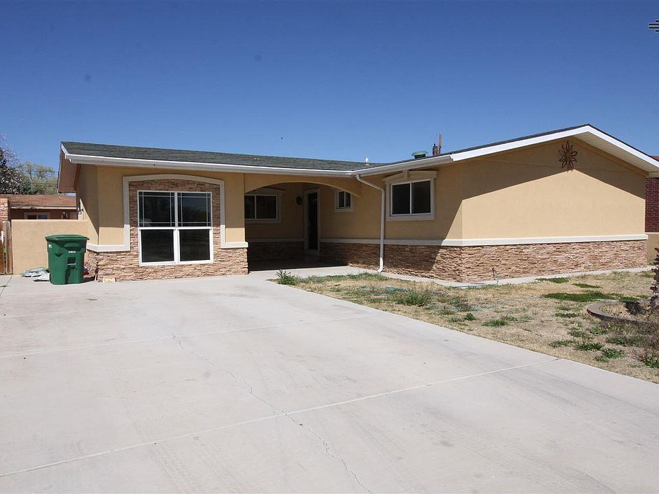 All new stucco on the outside including stucco cement block fence. Contemporary stacked rock facade on front and on raised planting beds front and back. Inside remodel partially finished. Still needs some inside doors, door trim, baseboard and crown molding finished. Tile throughout. Fairly new AC/Heating unit. New windows, metal facia and soffitt. Contemporary stucco trim on outside. Cement block storage/shop in backyard. Outside cooking area with chimney.